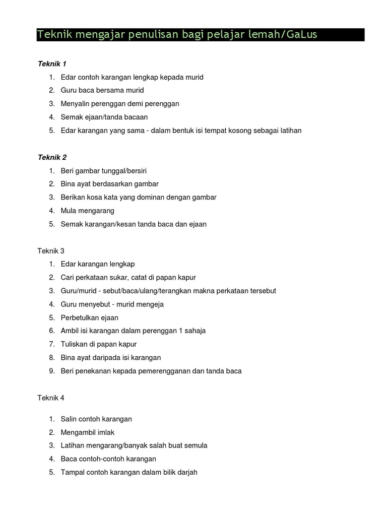 Teknik Mengajar Penulisan Bagi Pelajar Lemah Pdf